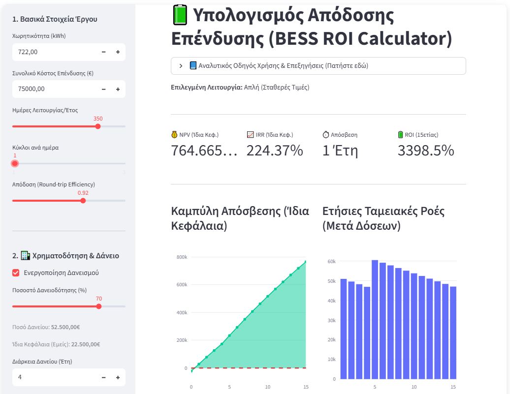 👉 Δοκιμάστε το BESS ROI Calculator εδώ https://bessenergy.gr/bess-calculator/