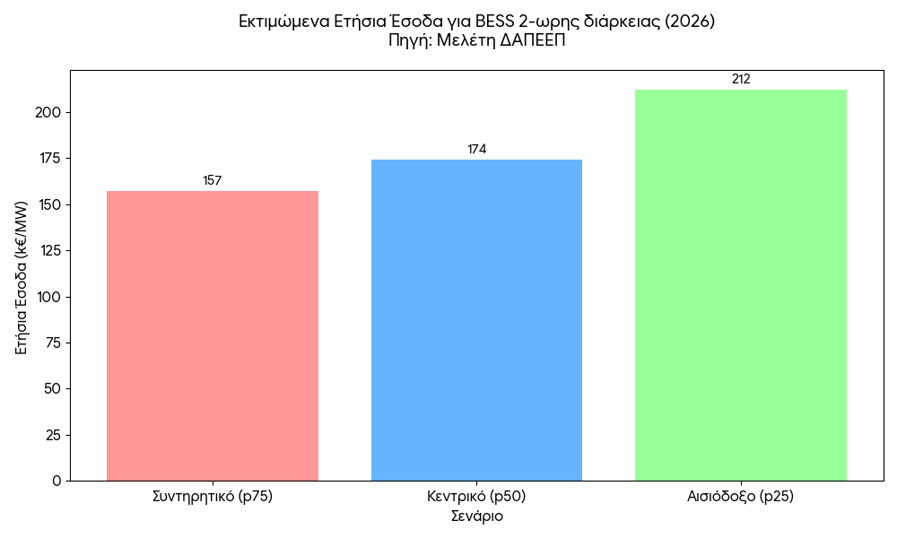 Τα τρία σενάρια εσόδων για το 2026 (ανά MW ισχύος)
